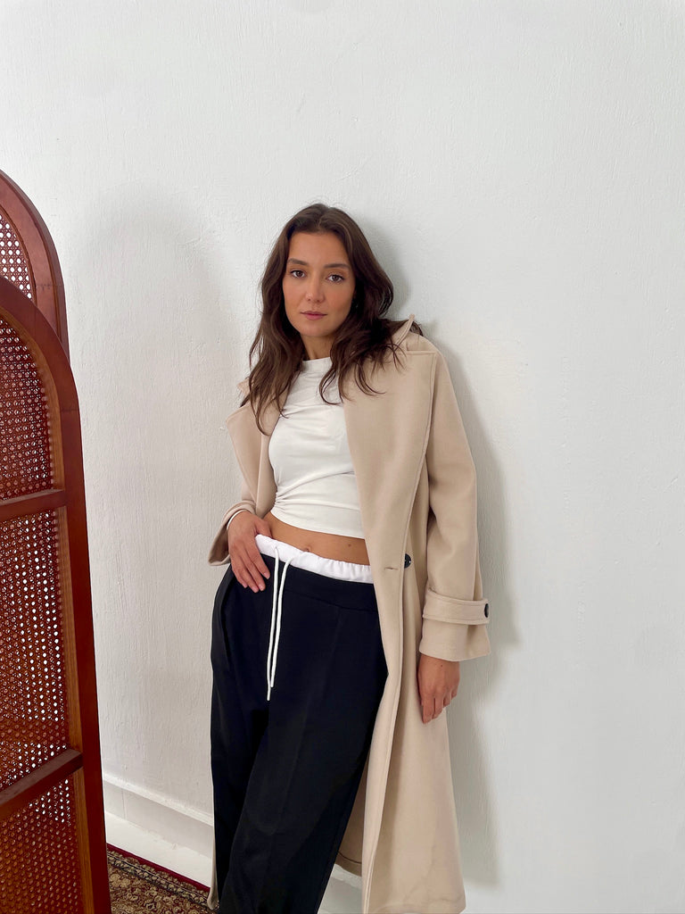 DOUBLE-WAISTBAND WIDE-LEG PANTS BLACK