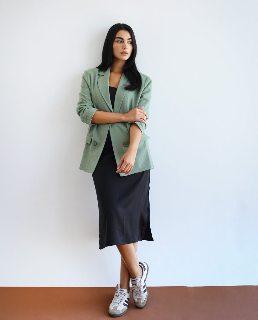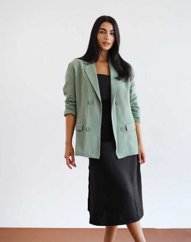 OPEN LINEN BLEND BLAZER SAGE-GREEN