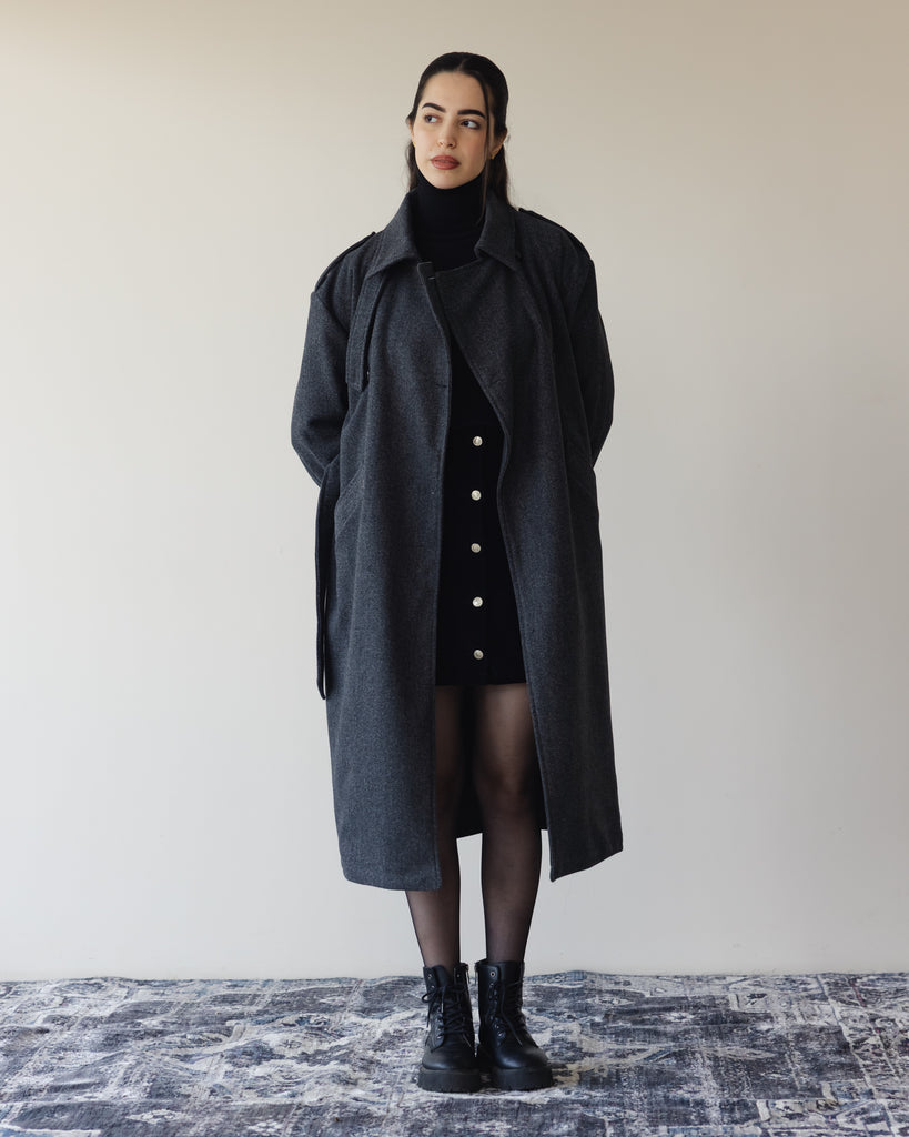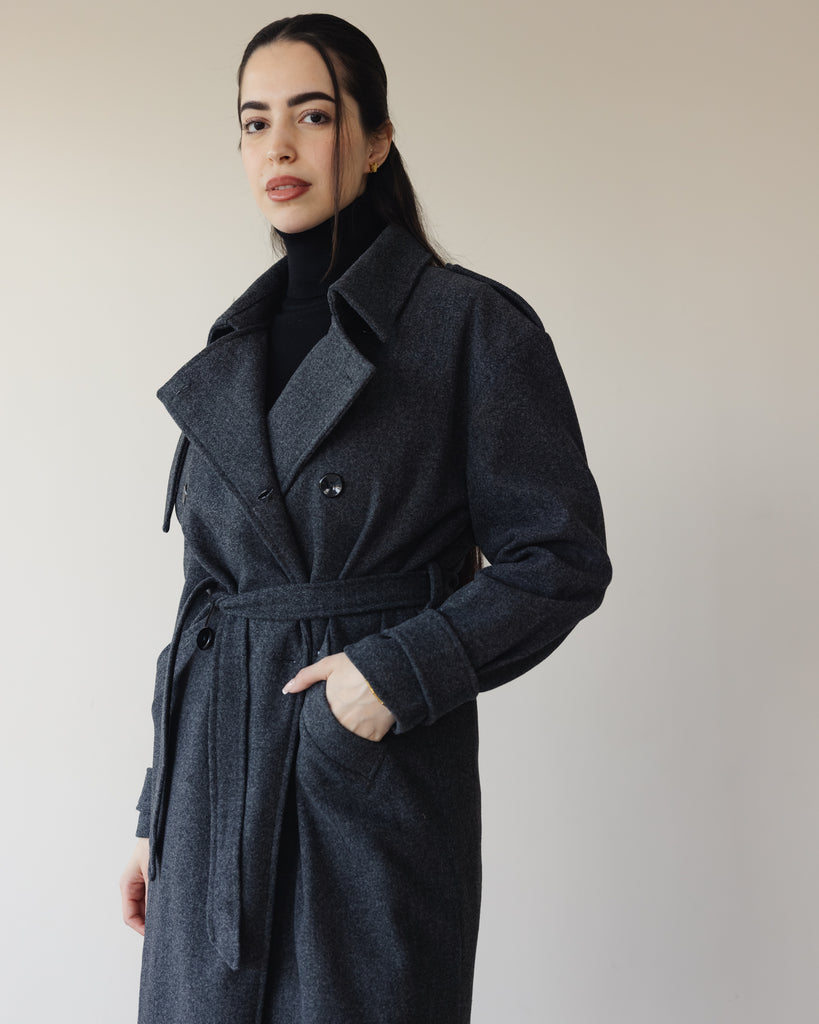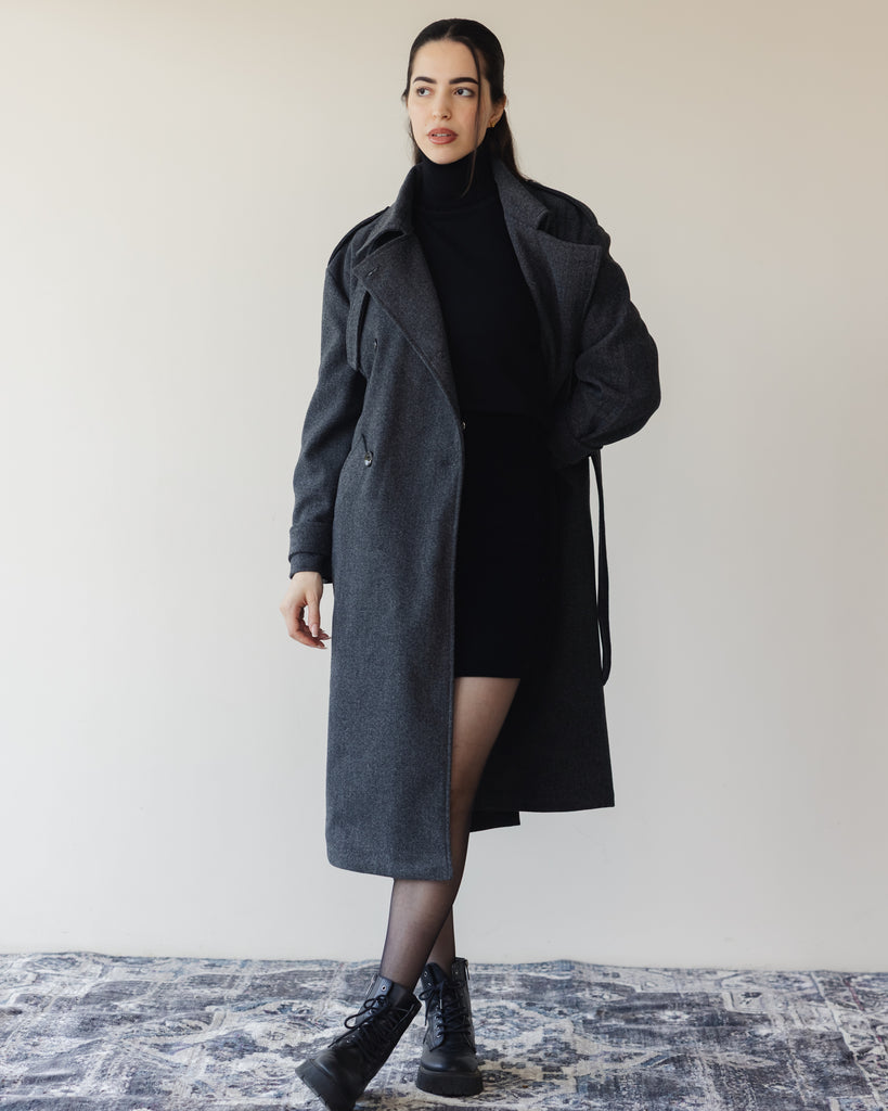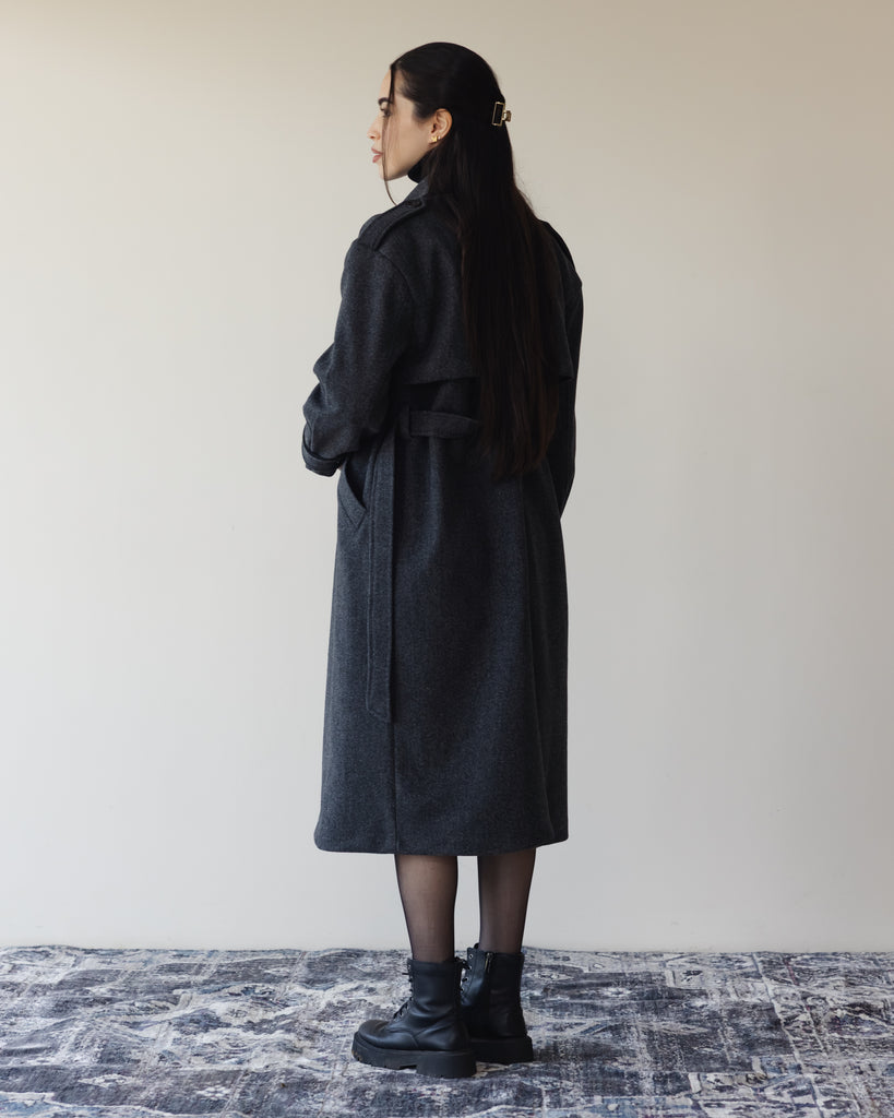 Effortlessly chic and timeless, this soft oversized trench coat redefines classic outerwear with a modern touch. Designed with a shirt collar and double-breasted fastening, it offers both structure and comfort. Features long sleeves, shoulder epaulettes, and a belt made from the same fabric for a refined silhouette. The two side pockets add practicality, while the fully lined interior ensures smooth layering and lasting comfort.