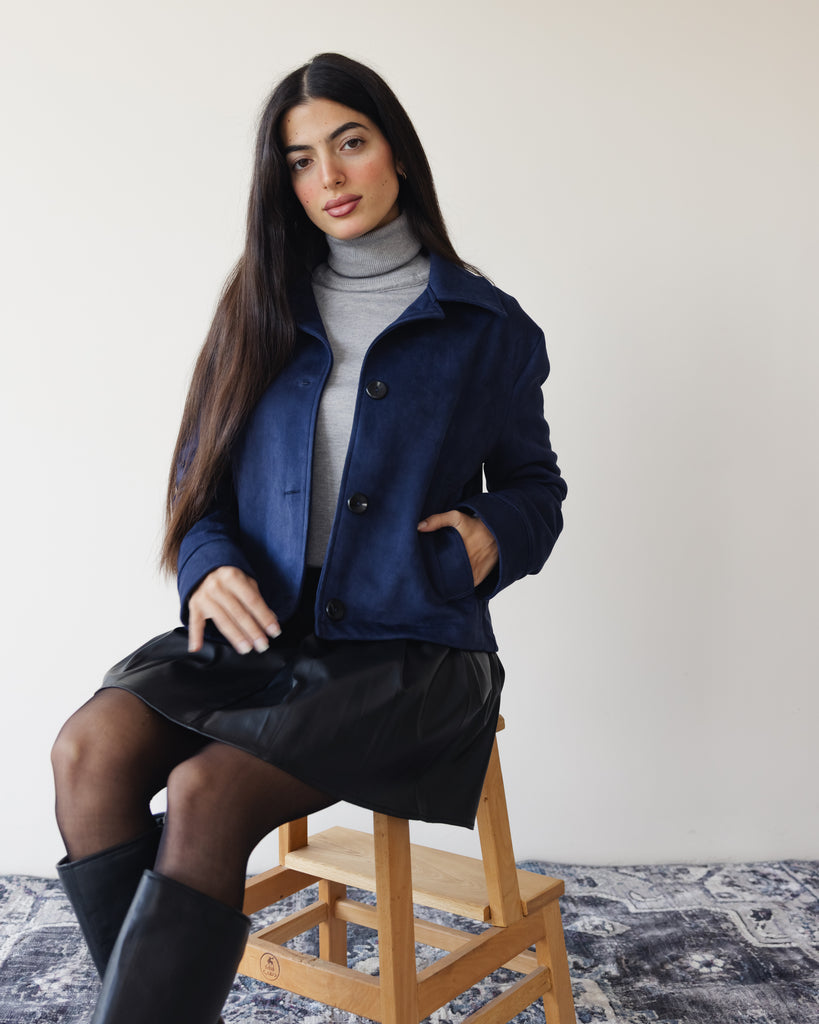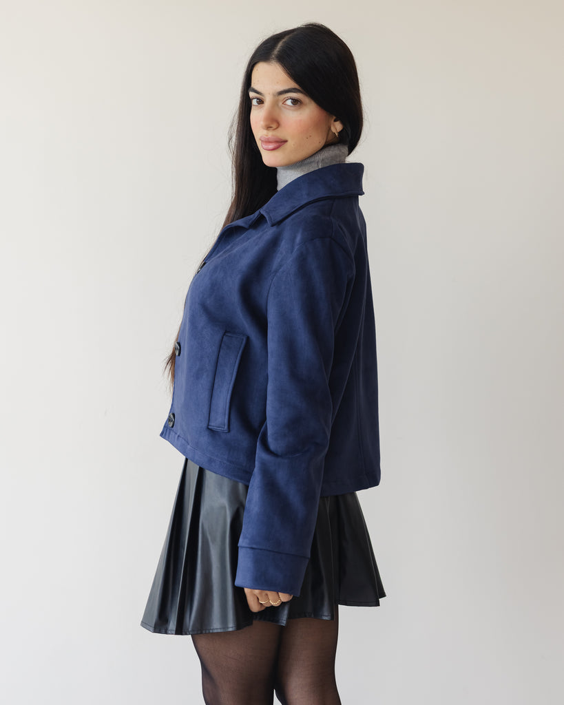 A timeless staple that blends sophistication with everyday ease. This suede jacket features a shirt collar, long sleeves, and two side pockets for a refined yet functional look. The fully lined interior ensures comfort and a smooth fit, while its 61 cm length makes it perfect for layering over any outfit — from casual denim to smart classics.