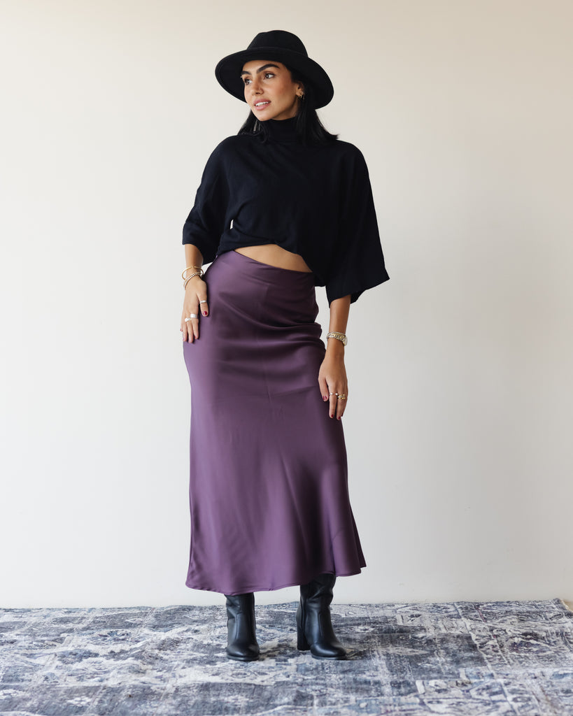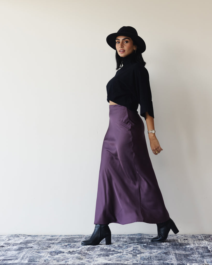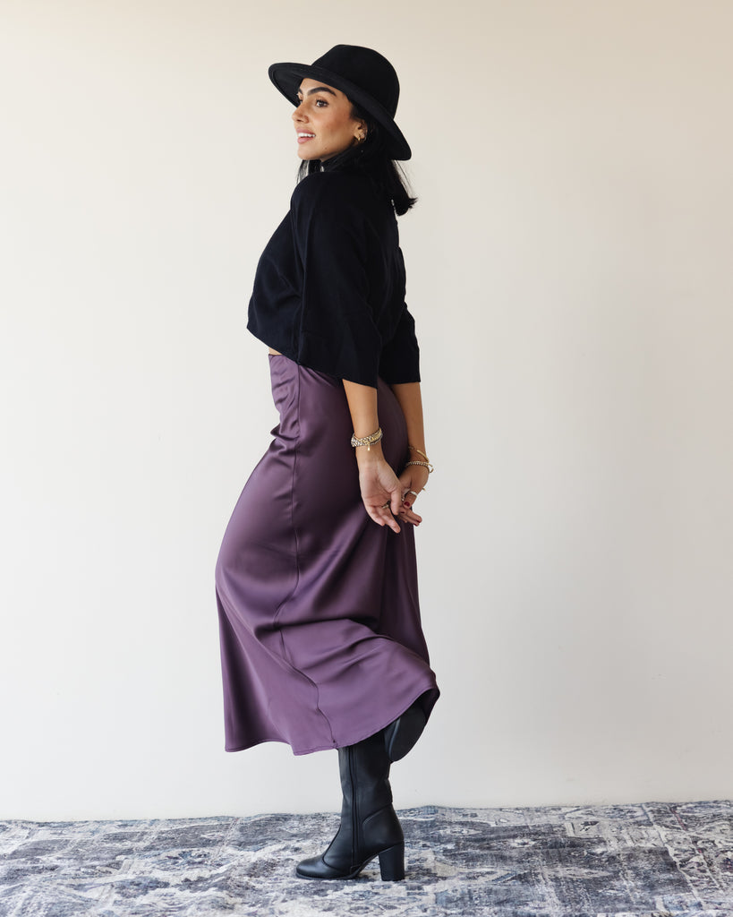 A sleek silhouette meets effortless comfort. This midi-length skirt (90 cm) is crafted from smooth satin with a subtle sheen that moves beautifully with every step. Designed with an elastic waistband for a flexible fit, it’s perfect for dressing up or down—whether paired with a tank for casual chic or elevated with heels for an evening look.