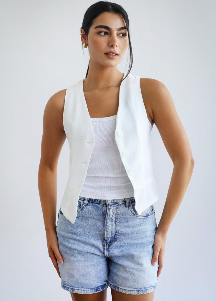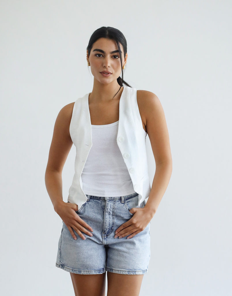 LINEN BLEND WAISTCOAT OFF-WHITE