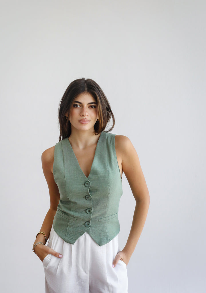 LINEN BLEND WAISTCOAT SAGE GREEN